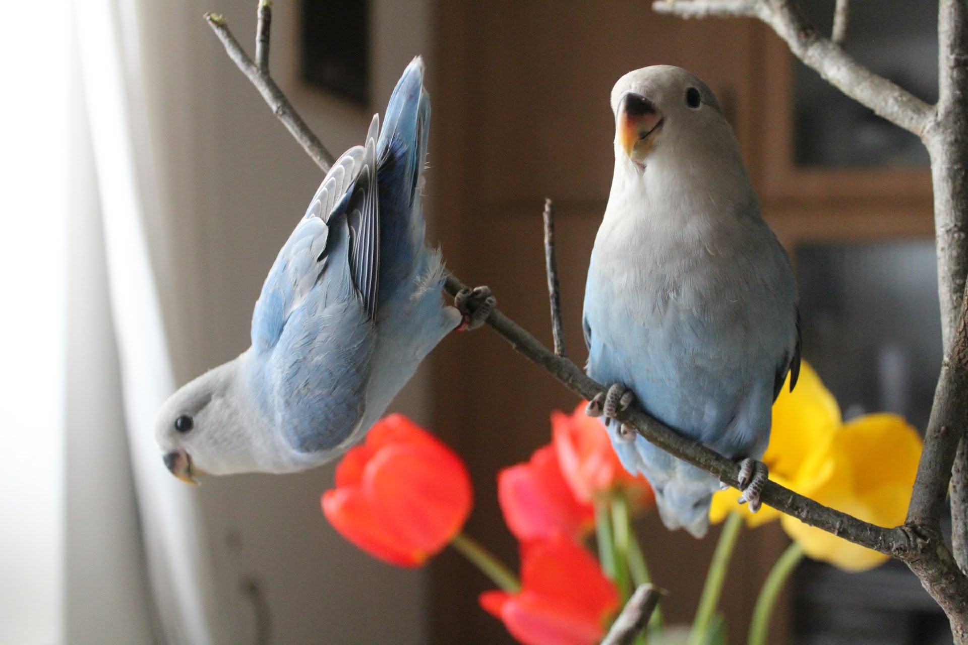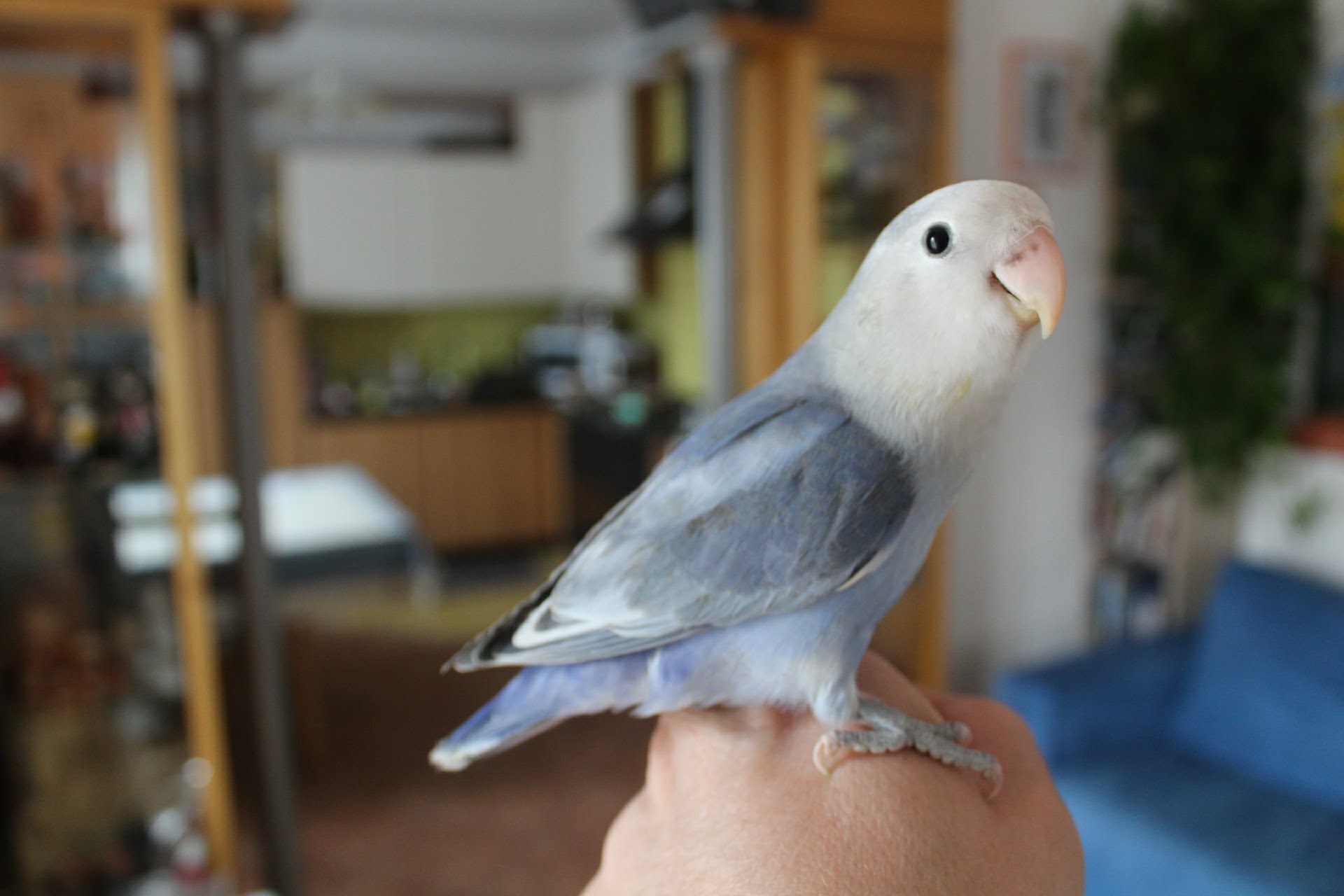 Nell' ottobre 2015, mi recai a una fiera internazionale sugli animali da compagnia ed incuriosito, acquistai due esemplari (mutazione Ancestrale), chiedendo una coppia, maschio e femmina. (Premetto, che in questa specie come molte altre, il dimorfismo sessuale è assente. Per distinguere il sesso degli Agapornis si possono trovare i più disparati metodi, dal "pendolino" alla palpazione col dito; la palpazione può essere valida per i piccioni, ma per gli Agapornis non è affidabile! insomma, con una percentuale del 50% possiamo metterci tranquillamente a indovinare il sesso lanciando una moneta e, se indovinate...dite grazie alla vostra fortuna.